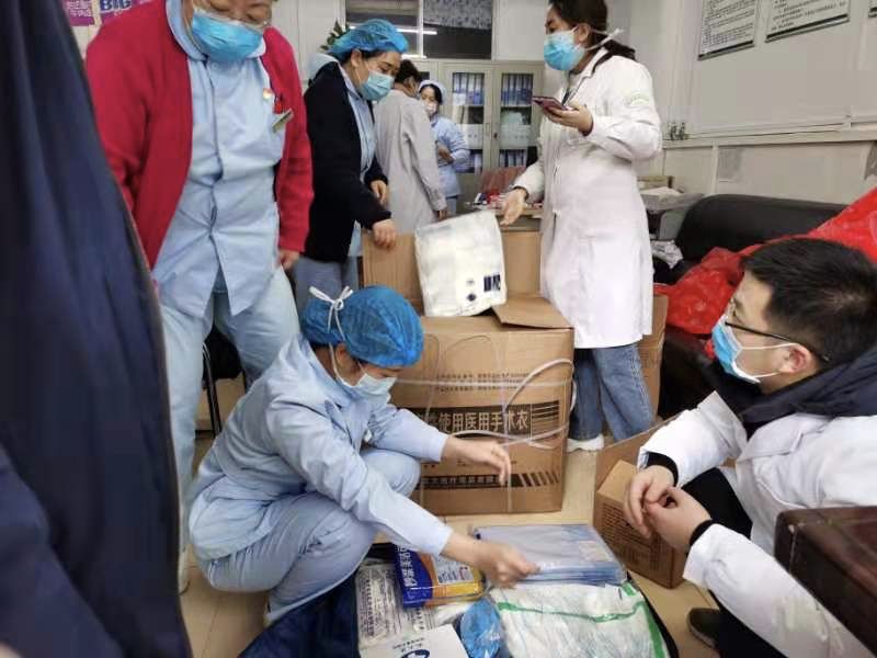 航空工業通用醫療三〇〇醫院工會、設備、后勤等部門 在為即將出征的戰士們準備必帶品,設備科按照要求為出征人員準備出征物資。