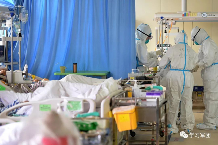 1月27日上午,海軍軍醫(yī)大學醫(yī)療隊醫(yī)護人員在漢口醫(yī)院重癥監(jiān)護室對新型冠狀病毒感染的肺炎患者進行救治。醫(yī)護人員精心護理患者。解放軍報記者范顯海攝