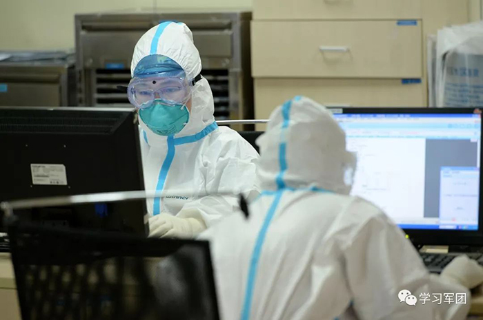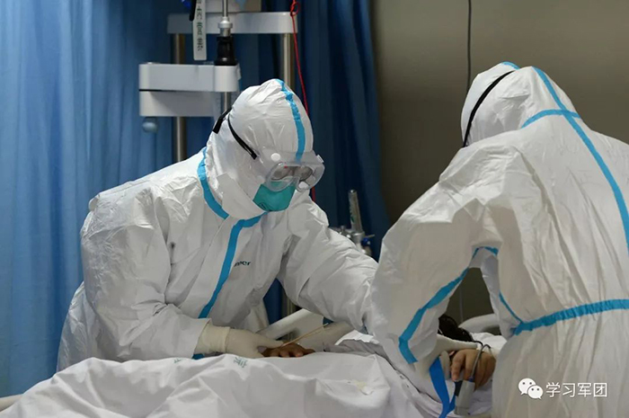 1月27日上午,海軍軍醫(yī)大學醫(yī)療隊醫(yī)護人員在漢口醫(yī)院重癥監(jiān)護室對新型冠狀病毒感染的肺炎患者進行救治。醫(yī)護人員密切關(guān)注患者病情,根據(jù)變化調(diào)整輸液速度。解放軍報記者范顯海攝