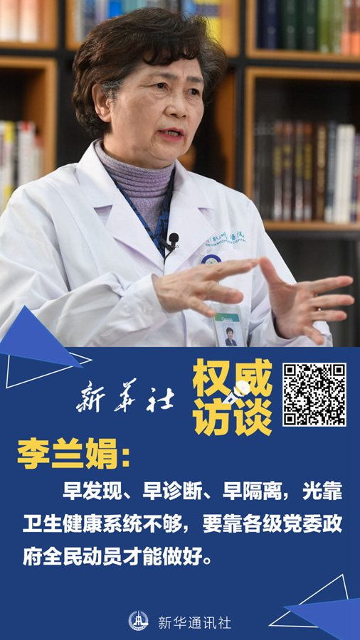 新型冠狀病毒感染的肺炎疫情每一天、每一點(diǎn)變化都牽動(dòng)人心。1月29日,“新華視點(diǎn)”記者專訪了中國工程院院士、國家衛(wèi)生健康委高級別專家組成員李蘭娟。她說,對傳染病思想上永遠(yuǎn)不能松懈。依靠各級黨委政府全民總動(dòng)員,依靠廣大專業(yè)的醫(yī)務(wù)人員,我們一定能勝利。