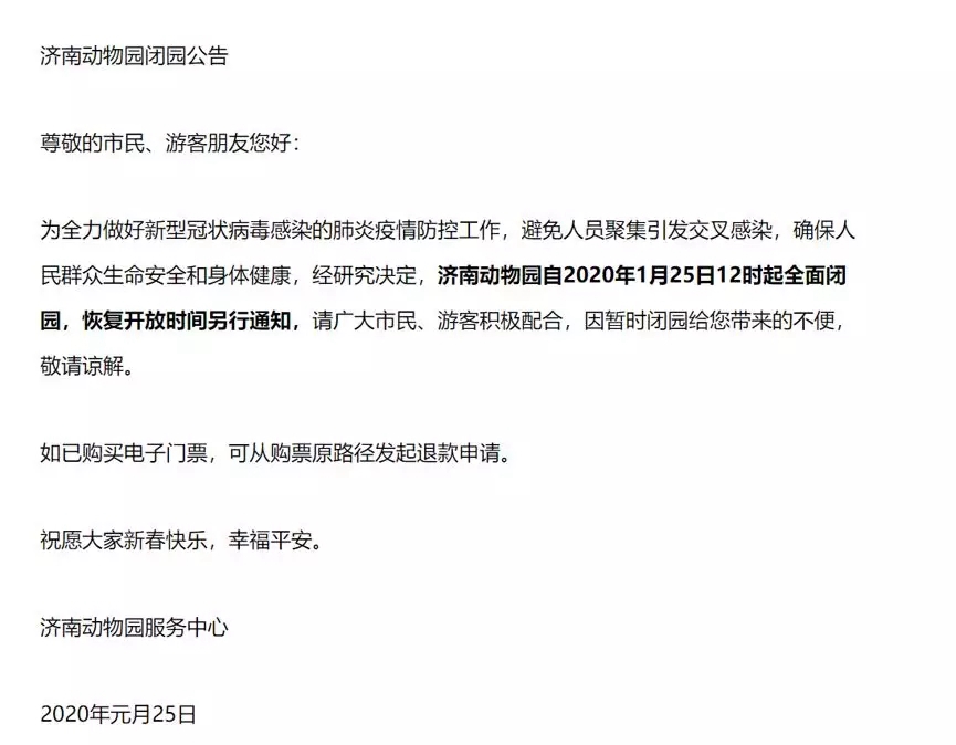 吉林、山東、湖北等地宣布叫停與野生動物相關(guān)一切交易和展演活動。陜西省林業(yè)局出臺十項措施,確保人與動物的安全距離。1月22日起,武漢市動物園、九峰森林動物園等景區(qū)都已經(jīng)暫停對外開放。原本計劃春節(jié)不打烊的濟南野生動物世界,從1月25日12時起就宣布閉園。飼養(yǎng)員每天按照既定的消毒制度,對籠舍及舍外活動場進(jìn)行消毒。