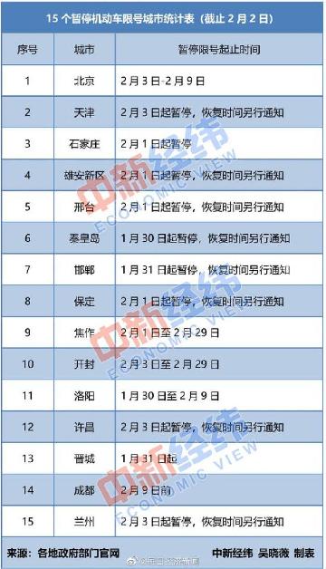 對(duì)部分上班族來(lái)說(shuō),3日是正式復(fù)工的第一天。為了減少人員聚集和交叉感染,阻斷疫情傳播,近日北京、天津、石家莊、雄安新區(qū)、邢臺(tái)、秦皇島、邯鄲、保定、焦作、開(kāi)封、洛陽(yáng)、許昌、晉城、成都、蘭州共15城發(fā)布了暫停機(jī)動(dòng)車尾號(hào)限行的措施,減少民眾公共交通出行。