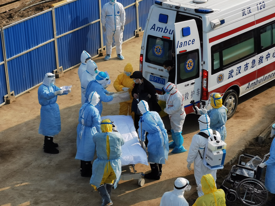 2月4日上午9時許,轉運首批患者的車輛抵達火神山醫院。
