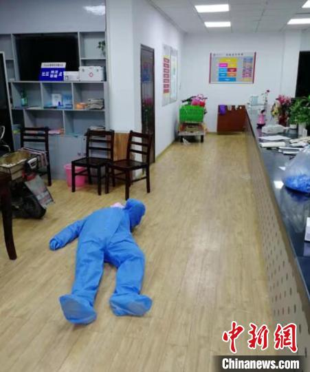 黃恒腰部疼痛難忍干脆躺在地上處理工作 張踐 攝