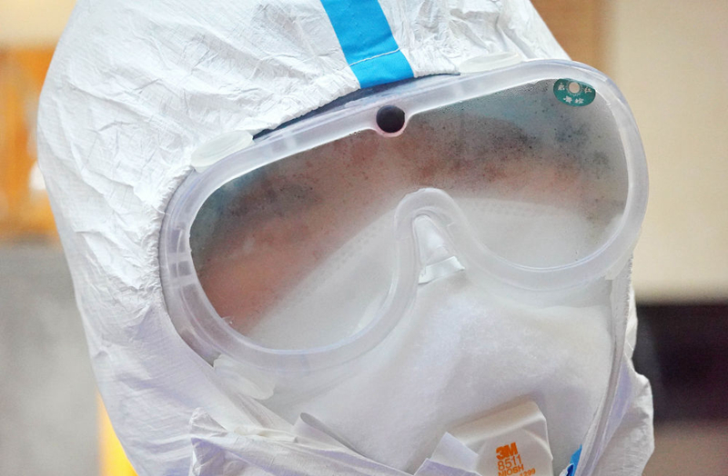 每次出門采訪都如臨大敵:先換好外出的衣裳、戴好醫用手套、戴好護目鏡,然后再小心翼翼地在臉上加上一個或兩個口罩,在門口換上出門的鞋,最后再背上采訪設備——每次做完這些的時候,作為胖子的我身上已經開始冒汗并且氣喘吁吁。如果要去醫院采訪,有時候還要再穿上一件防護服。這樣的裝備,出門走一圈其實已經很難受了,而我還要隔著不斷產生霧氣的護目鏡拍照,要不斷地移動、尋找最好的拍攝角度和位置,采訪的時候更要記下一個個口罩后面的名字、故事......這樣的采訪狀態對我而言,從未曾經歷過——多年前,我曾在利比亞做過戰地記者,也曾被武裝分子用槍指著腦袋,但這次在武漢,我不知道那些危險的“敵人”究竟藏在何方,也許就在無處不在的空氣里!