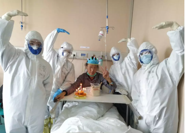易老先生對(duì)我們說:“你們讓我度過了一個(gè)別開生面,永生難忘的76歲壽誕,讓我重拾戰(zhàn)勝病毒的信心。雖然你們穿著防護(hù)服,戴著面罩,看不清你們的臉,但我相信你們都是最美的白衣天使。”