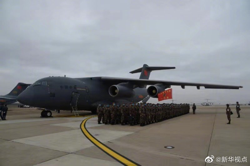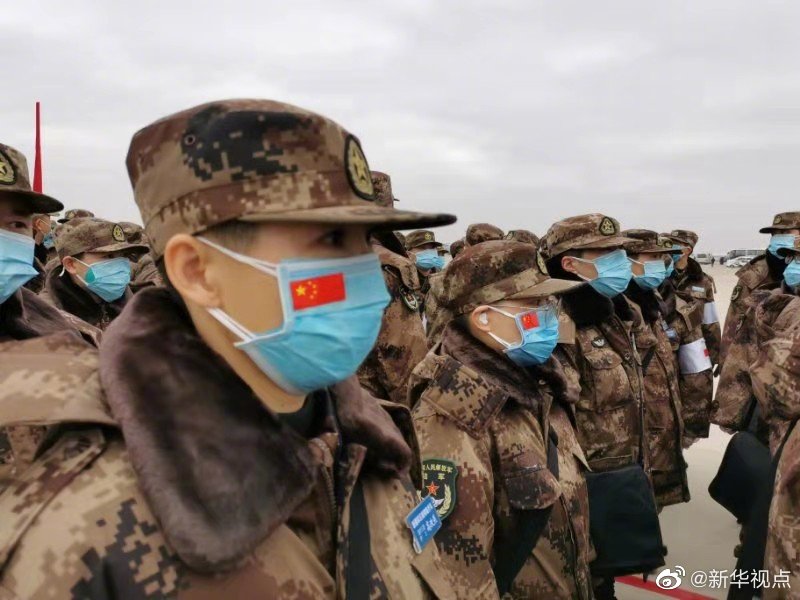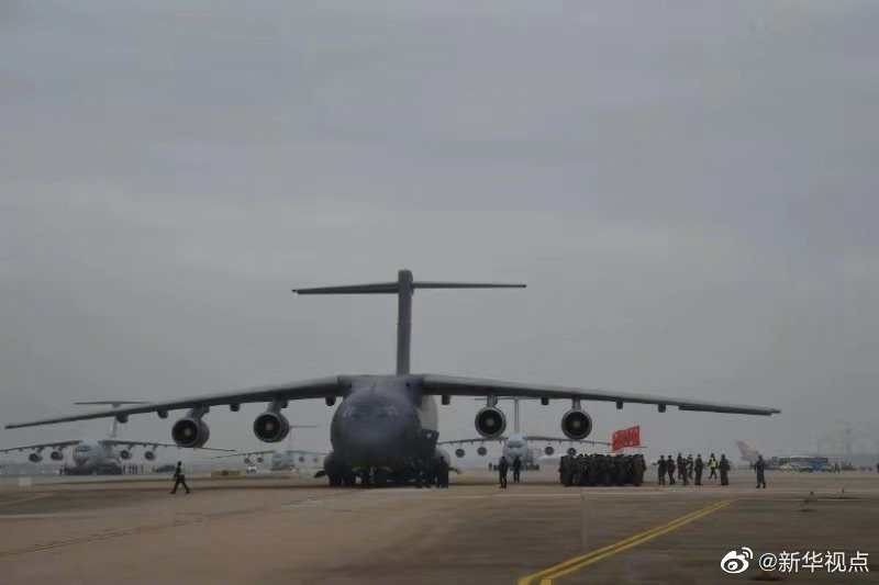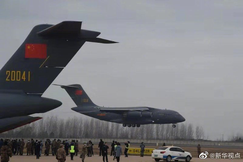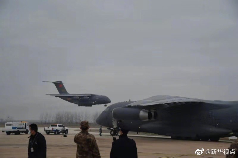 軍隊(duì)增派2600名醫(yī)護(hù)人員支援武漢抗擊新冠肺炎疫情。國產(chǎn)大型運(yùn)輸機(jī)運(yùn)-20“胖妞”首次參加非戰(zhàn)爭軍事行動(dòng)。13日,空軍出動(dòng)3型11架運(yùn)輸機(jī)多地同步向武漢空運(yùn)醫(yī)療隊(duì)員抵達(dá)武漢天河機(jī)場(chǎng)。(新華社記者黎云攝) ????