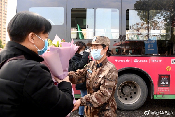記者看到,出院患者生命體征和精神狀態都有明顯改觀,均無需攙扶,可獨立行走。一名66歲的患者臨行前,連連向前來送行的醫護人員鞠躬致謝。