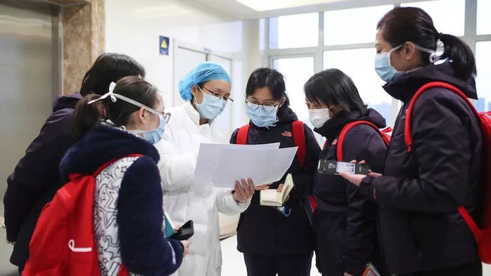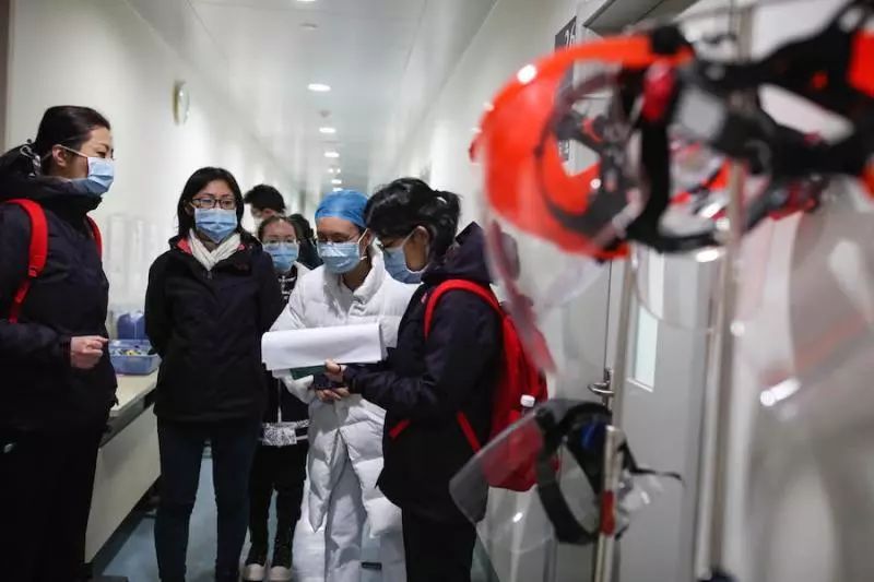 通向過道的一扇門打開了,走出一個年輕的女護士,鼻梁上的紅色壓痕還在,顯然是剛剛卸下口罩從隔離病房出來。她一抬頭,看到塞滿過道的人,有些手足無措,手上拎著的護目鏡也忘了放進消毒桶里。她很久沒有在病區看到這么多健康的人了。今天,援兵終于來了。