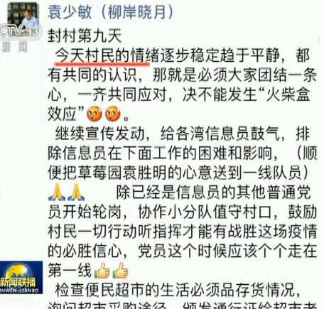 老袁日記:今天村民的情緒逐步穩定趨于平靜,都有共同的認識,那就是必須大家團結一心,一齊共同應對。黨員這個時候應該個個走在第一線!