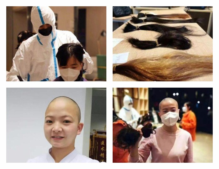 西安國際中心醫(yī)院醫(yī)療隊的女醫(yī)護(hù)正在剪發(fā)