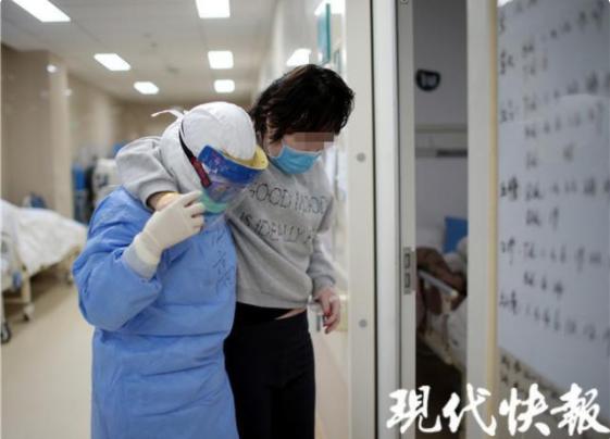 2月18日下午,現代快報記者走進“紅區”——重癥隔離病房里,用鏡頭記錄下一組組“我和你”的故事。