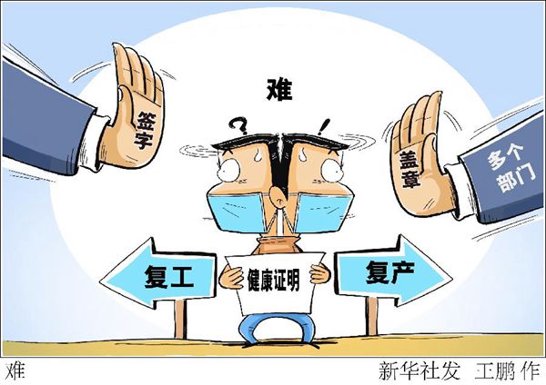 根據(jù)中央部署,全國不少地方在嚴抓疫情防控的基礎(chǔ)上,正逐步開展復工復產(chǎn)?!靶氯A視點”記者接到一些群眾和企業(yè)反映,返程上班和恢復生產(chǎn),在辦理相關(guān)證明過程中遭遇不少形式主義的煩惱。