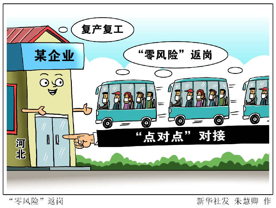 漫畫:“零風(fēng)險”返崗 為確保務(wù)工人員“零風(fēng)險”輸出和輸入,河北各地前移疫情防控三道防線,按照“全流程控管、全方位服務(wù)、全天候監(jiān)測”的要求,精準(zhǔn)定向為企業(yè)輸送務(wù)工人員,滿足企業(yè)復(fù)工復(fù)產(chǎn)和農(nóng)民外出務(wù)工增收的雙重需求。 新華社發(fā) 朱慧卿 作