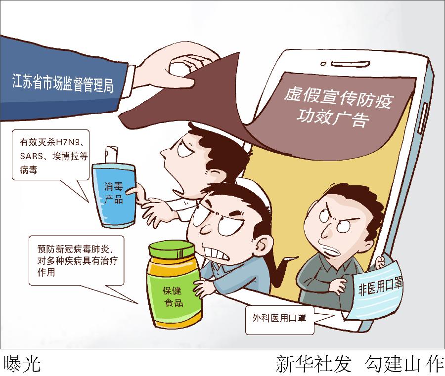 江蘇省市場監(jiān)管局表示,對在疫情防控期間發(fā)布虛假違法廣告等行為,江蘇各地市場監(jiān)管部門將會第一時間責令停止發(fā)布,從嚴從重查處。