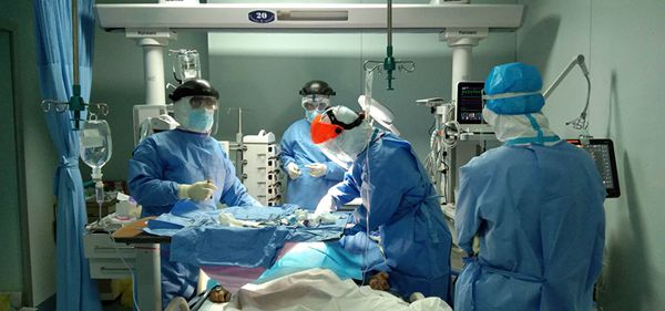 澎湃新聞(www.thepaper.cn)2月28日從武漢大學(xué)人民醫(yī)院東院區(qū)獲悉,28日下午,在與死神的“搶人”大戰(zhàn)中,該院耳鼻喉科主任朱霆帶領(lǐng)的3人黨員“氣切小分隊(duì)”(新冠肺炎患者氣管切開(kāi)手術(shù)小分隊(duì))又一次獲得了勝利。截至2月28日,“氣切小分隊(duì)”已完成了5例針對(duì)新冠肺炎危重癥患者的氣管切開(kāi)手術(shù)。