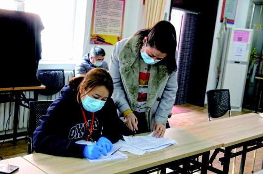 2月8日,盧溝橋街道工委書記高文娟在民岳家園社區(qū)回復(fù)“12345”群眾訴求,與社區(qū)工作人員一同記錄回復(fù)時間及訴求人反饋意見。 采訪對象供圖