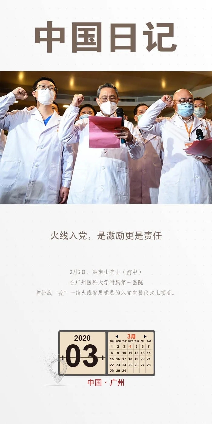 3月2日下午,一場特殊的入黨宣誓儀式在廣州和武漢兩地舉行。廣州醫(yī)科大學(xué)附屬第一醫(yī)院與廣東省馳援武漢醫(yī)療隊通過遠程視頻連線,舉行首批戰(zhàn)“疫”一線火線發(fā)展黨員入黨宣誓儀式,鐘南山院士領(lǐng)誓。