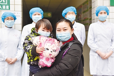 2月14日,一名新冠肺炎患兒從湖北省秭歸縣人民醫院感染性疾病科治愈出院。王家滿攝/光明圖片