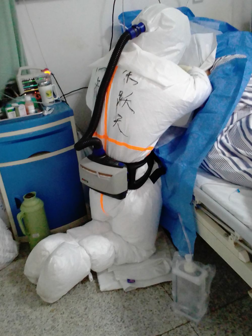 他們的防護服下面全是汗水