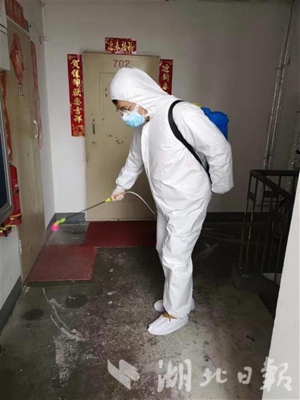 省電社區(qū)下轄的5個(gè)小區(qū)中,最大的是徐東嘉園,共15棟樓約700余戶居民,是社區(qū)新冠肺炎確診人數(shù)、疑似人數(shù)最多的小區(qū)。報(bào)到第一天,他主動認(rèn)領(lǐng)徐東嘉園的消殺任務(wù):“我年輕、身體好,最重的活交給我就對了!”