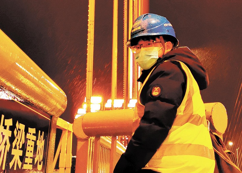 27歲的溫瑞是中鐵十五局電氣化公司武漢長江主軸橋梁彩化亮化美化項目員工。到3月15日,他已經(jīng)獨守在橋下的小板房55天了。3天一小查,7天一大查,溫瑞背起工具包上橋,一巡就是4小時到6小時。溫瑞說,他守護的不僅僅是燈光,更是一種希望,傳遞著武漢人的信心和堅強。(湖北日報全媒記者 田悅 攝)