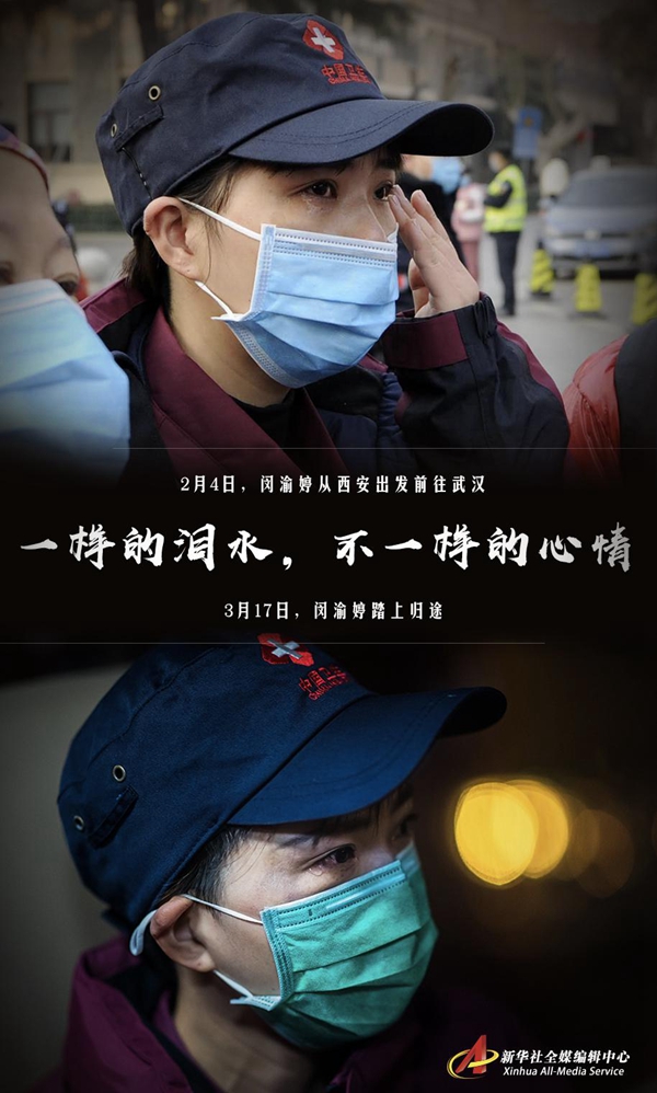 3月17日,陜西國家緊急醫學救援隊踏上返程。隊員閔渝婷忍不住落淚。