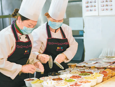 首先是讓消費者吃得踏實放心。中國飯店協會聯合紅餐網發布《疫情防控期間餐企經營指南》,提出以“安全”為第一要務。具體內容包括:在食材保障方面,建立統一科學的原料采購管理機制,選擇資質合格、原料可溯源的供應商;在公共設施方面,餐廳內所有洗手池配備酒精洗手液,保障消毒設施供應充足,并準備好口罩、測溫儀等防護物資;在員工管理方面,加強例行檢測,組織疫情防護培訓,使員工了解病毒傳播途徑和防范方法,具備應急處理能力。從多方位采取嚴格措施,保障食品衛生等。不少餐飲門店以此為契機,細化從食材選購到加工制作再到外送的全流程服務,在全面提高安全衛生水平的同時,也通過進一步透明化,吸引消費者。