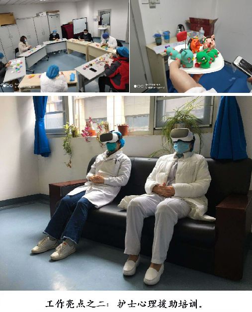武漢大學(xué)人民醫(yī)院東院根據(jù)專家組提供的方案,制定了本單位具體實(shí)施方案,在醫(yī)院?jiǎn)T工休息區(qū)開設(shè)醫(yī)務(wù)人員心靈驛站,營(yíng)造溫馨輕松環(huán)境(房間布置、花、食物等),播放有關(guān)心理健康知識(shí)、放松訓(xùn)練、心理干預(yù)技巧音頻視頻,為來訪人員提供生物反饋、音樂治療、放松訓(xùn)練、智能心理減壓放松系統(tǒng)(虛擬現(xiàn)實(shí))、手工制作等心理健康服務(wù)。心靈驛站為醫(yī)護(hù)工作者在繁忙的臨床工作后,提供了一個(gè)休養(yǎng)生息、溝通交流、鼓勁加油的場(chǎng)所,有效緩解了醫(yī)護(hù)人員緊張、焦慮等情緒。