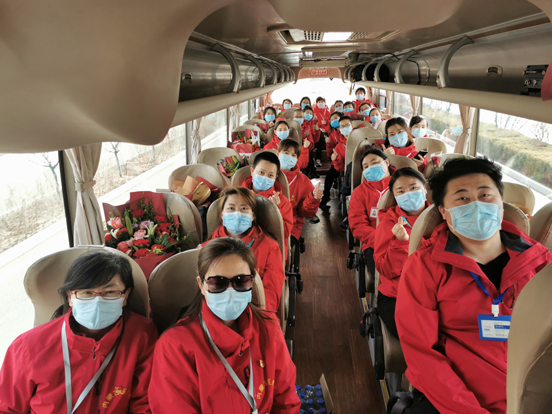 3月18日,內蒙古第二批馳援湖北醫療隊啟程返回家鄉。內蒙古婦幼保健院供圖