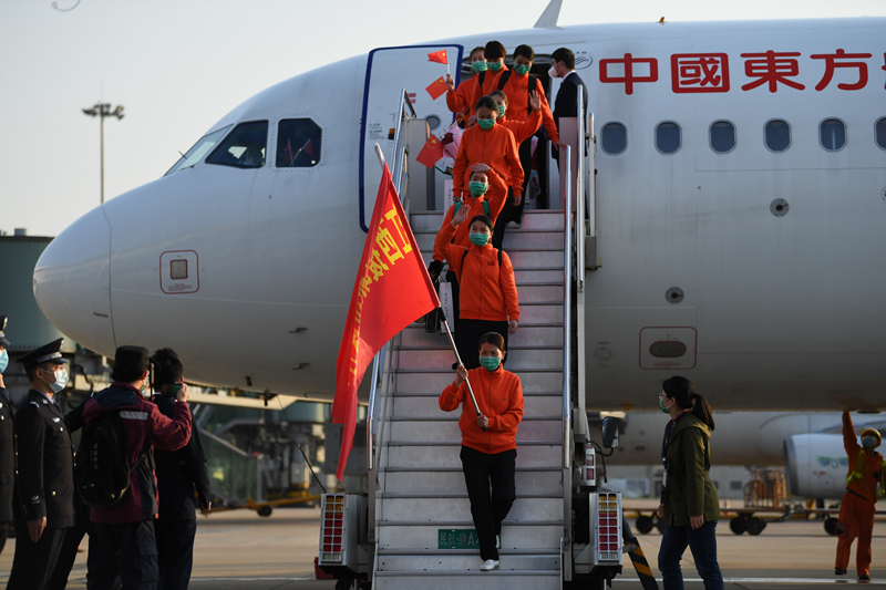 3月19日18時許,江西第二批援助武漢醫療隊(江西援助武漢醫療護理隊)在圓滿完成武漢新冠肺炎患者醫療救治任務后,平安返贛。時雨攝
