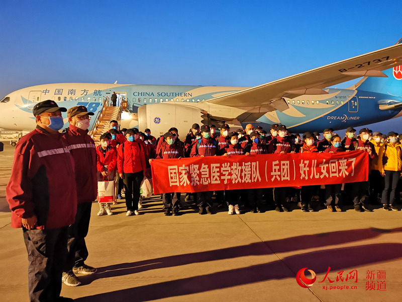 新疆生產建設兵團支援湖北醫療隊抵達烏魯木齊機場。陳新輝攝
