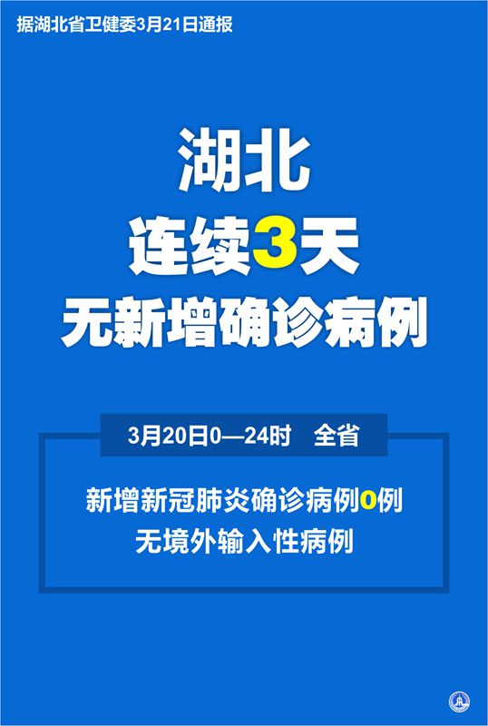 新華社武漢3月21日電(記者侯文坤)據(jù)湖北省衛(wèi)健委21日通報(bào),3月20日0—24時(shí),全省新增新冠肺炎確診病例0例,無境外輸入性病例。
