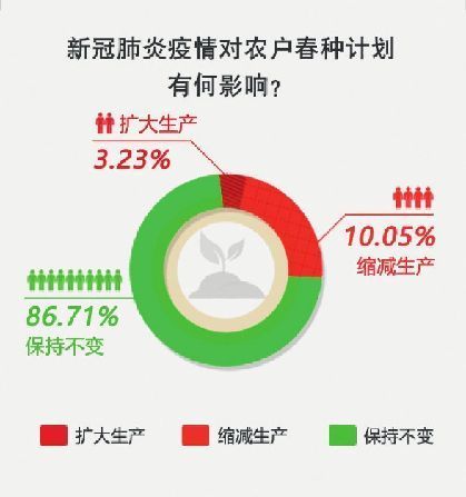 調(diào)查顯示,86.71%的農(nóng)戶表示春種計(jì)劃保持不變,只有18戶(占3.23%)農(nóng)戶表示將擴(kuò)大生產(chǎn),而56戶(占10.05%)農(nóng)戶表示將縮減生產(chǎn)。(見圖3)