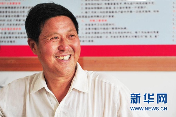 王坤友在村委會辦公室內(資料照片)。新華社發