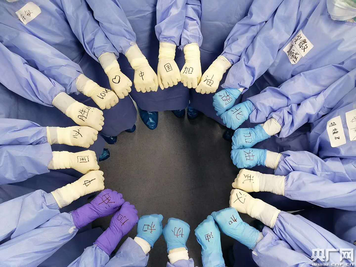 這種無需開口的默契配合、互相幫助常常帶給我無盡的暖意。工作中每每遇到困難,總有戰友站在身旁,給予鼓勵、一起解決;數不清多少次,大家總是在完成自己的工作后,默默地去幫助其他人;更忘不了當看著一個個病人轉出時,隔著厚厚的防護目鏡下彼此欣悅的眼神……幾十天里,為了戰勝疫情這個共同的目標,我們從四面八方相聚在武漢,從陌生人變成同進退、共攜手、密不可分的戰友,因為有你們并肩作戰,讓我不再懼怕病毒,讓我更加堅信這場戰役我們能贏!