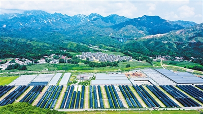 河北保定阜平縣食用菌產業核心區有二百零三座大棚,不遠處就是南栗園鋪村蓋起的新民居,村民實現了家門口就業,增收致富。羅大慶攝/光明圖片