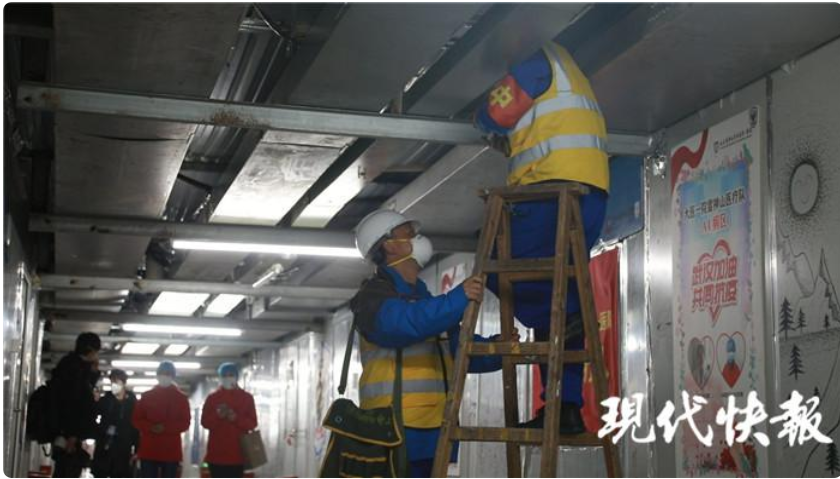 火神山和雷神山是兩所 "速成工程醫院",這給維保帶來了不小的難度。據雷神山醫院維保隊副隊長蔡望介紹,地漏、門鎖最常出現問題" 為了能盡快收治病人,醫院是以最快的速度搭建起來的,地漏在使用過程中難免會出現內陷的情況,翹起來,就導致地漏堵塞,工人要以最快的速度進去維修。" 他還說,最難搞的是頂棚,刮風下雨時,頂棚會出現漏水甚至塌陷的現象,需要多個工人進去維修," 線路出問題,一兩個人進去就夠了,但頂棚,需要有人抬、有人裝、有人扶梯子,一次至少要三個人以上,如果面積過大,要四到五個人。" 他說。