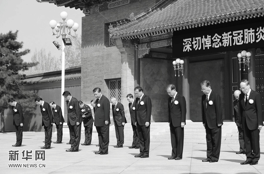 10時(shí)整,防空警報(bào)鳴響,習(xí)近平等向新冠肺炎疫情犧牲烈士和逝世同胞默哀。