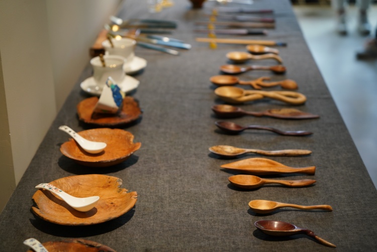 上海浦東新區唐鎮文化創藝中心內的文智工坊創意體驗中心展示的各種勺子和筷子。(上海浦東新區文產促進中心供圖)