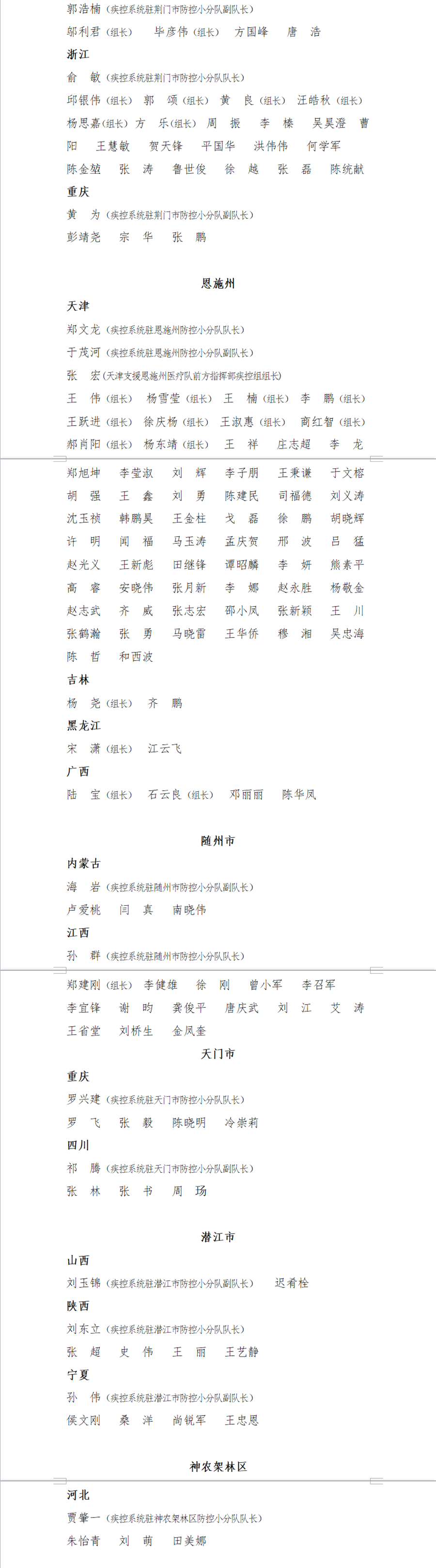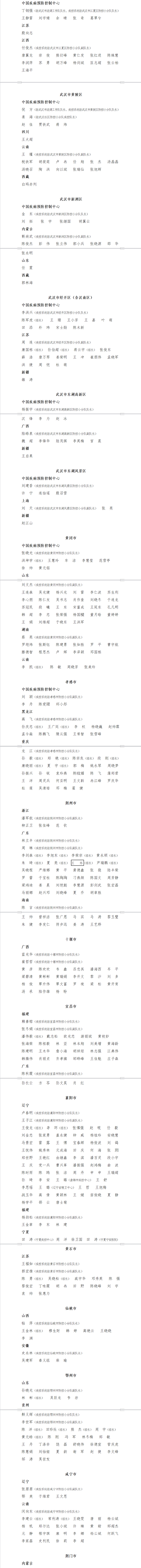 為做好一線人員關心關愛工作,鼓舞全系統士氣,現將支援湖北省和武漢市疾控隊伍人員名單印發給你們(詳見附件)。全國疾控系統要向逆行出征的援鄂、援漢防控隊員們學習,慎終如始,再接再厲、善作善成,堅決打贏疫情防控的人民戰爭、總體戰、阻擊戰。