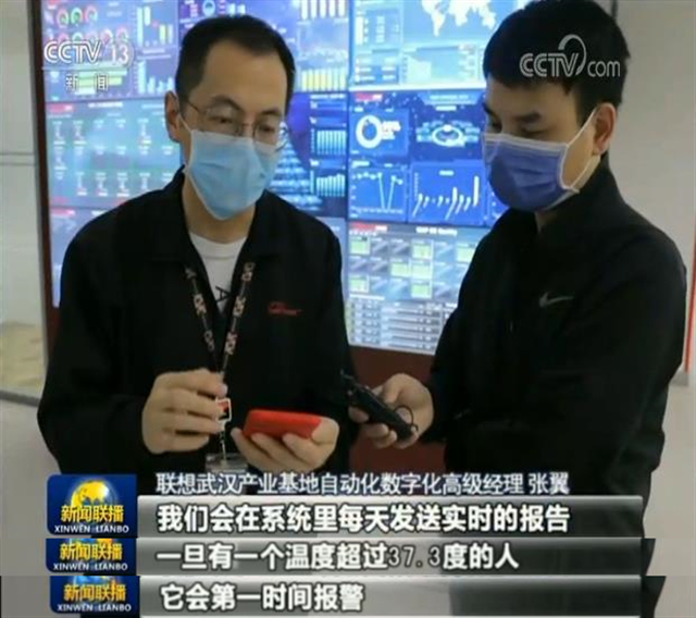 這里是聯想武漢產業基地,目前復工復產率已達到100%,所有返崗員工都需持有健康證明,在工作區域每隔4小時就有網格員來測量體溫。此外,企業還專門開發了數字化防疫系統,對在崗員工健康狀況進行精準管理。