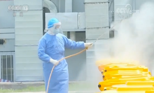 火神山醫院洗消分隊隊長 張鵬飛:我們洗消分隊主要是在病區所有的范圍內道路、環境、區域、房間這些區域內進行消殺。所有區域的病毒我們都要消,都要殺,以保證咱們病區的安全,保證咱們醫務人員的安全。