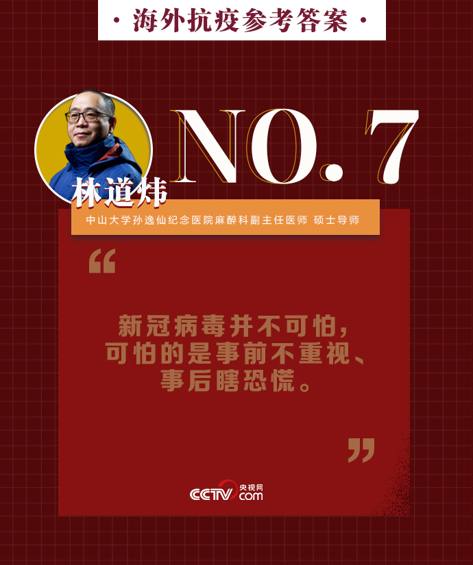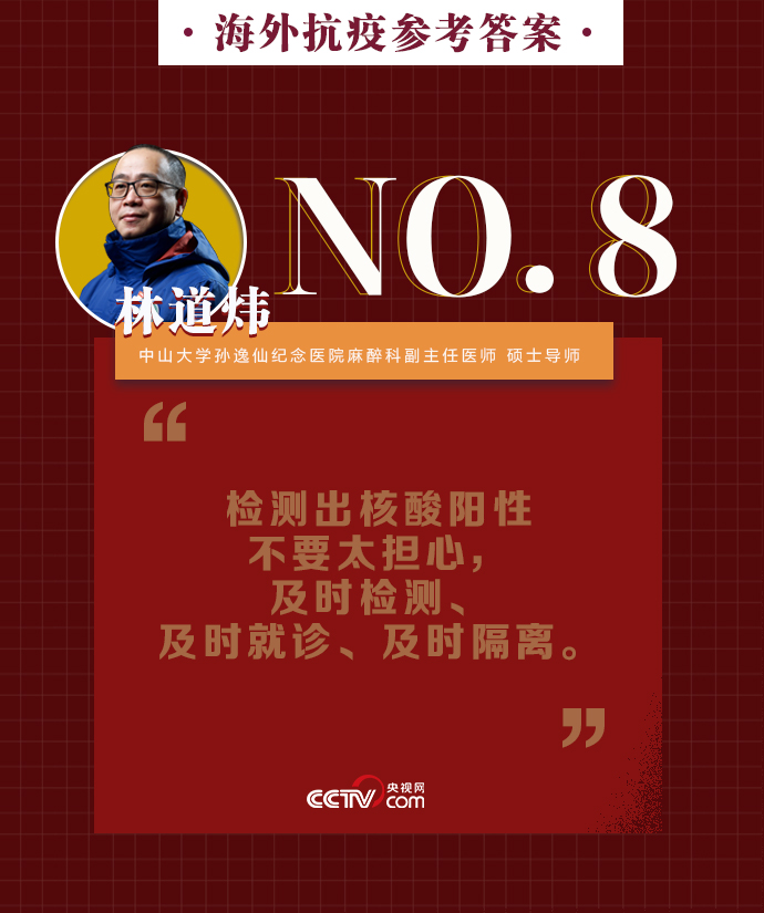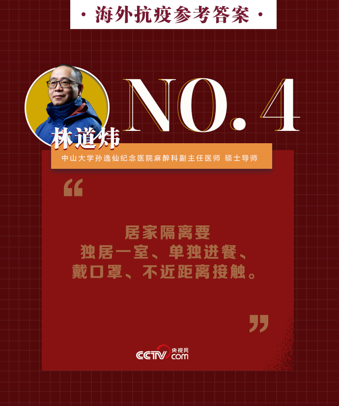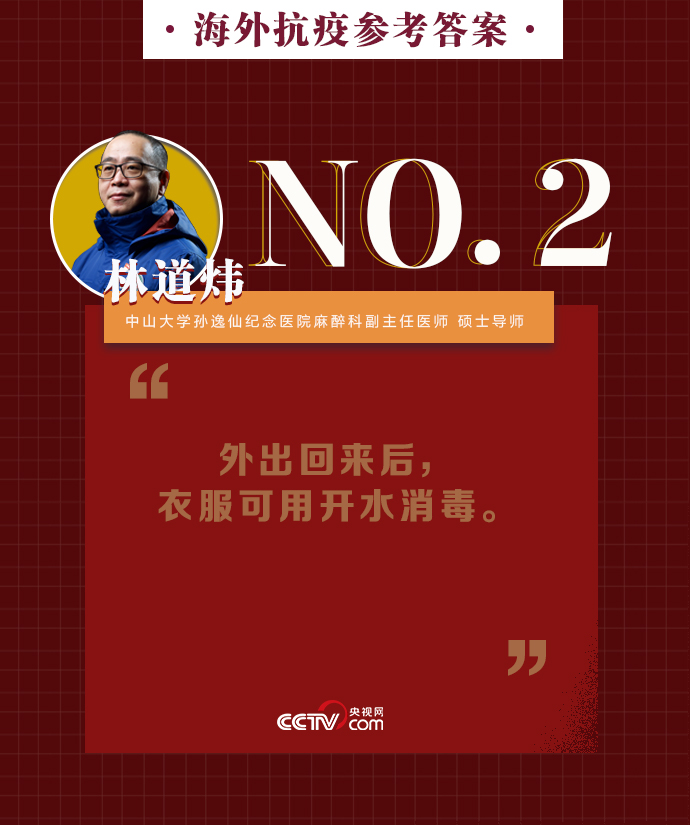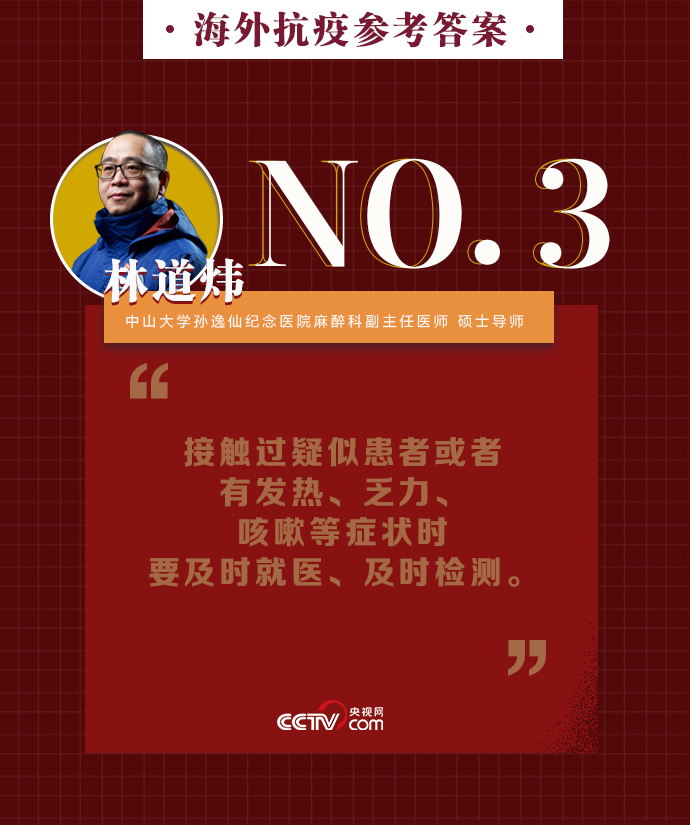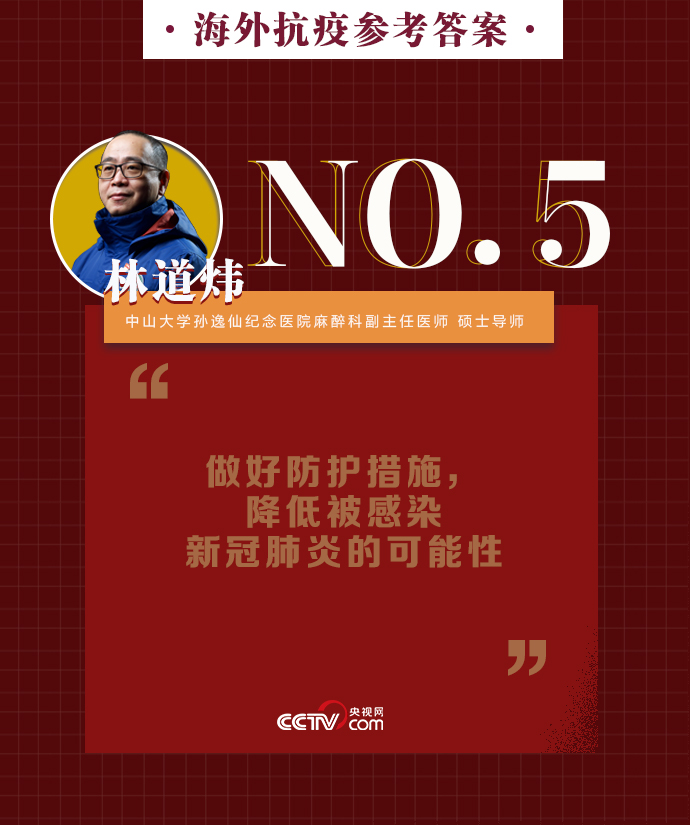 新冠肺炎疫情在全球持續暴發,海外同胞如何做好基本防護、保證自身安全?出現焦慮緊張的負面情緒該如何緩解?中山大學孫逸仙紀念醫院麻醉科副主任醫師、碩士導師林道煒送上硬核攻略:戴口罩、注意手衛生、減少與人接觸。做好這些,新冠病毒不可怕。