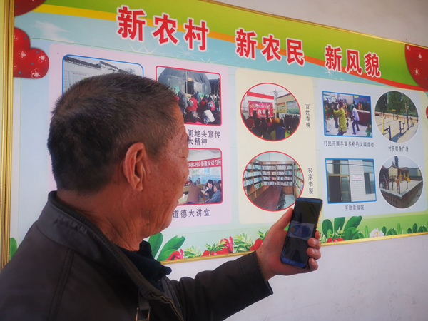 24日下午,新河縣劉秋口村村民劉志民在村委會收聽收看視頻培訓。王帥 攝