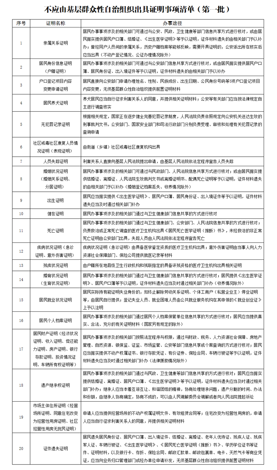 附件:不應(yīng)由基層群眾性自治組織出具證明事項清單(第一批)