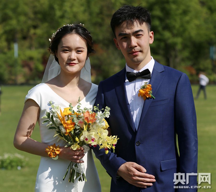 婚禮會延期,但愛不會遲到。4月25日,“2020莫干山大型戶外公益集體婚禮”在浙江舉行,40多對因新冠肺炎疫情影響而耽擱婚期的新人喜結(jié)連理。徐越宇和倪可靜就是其中的一對?!敖?jīng)歷疫情之后,我發(fā)現(xiàn)她很堅強,雖然耽誤了婚禮,但我們的心卻走得更近?!毙吕尚煸接铑H有感觸地說。