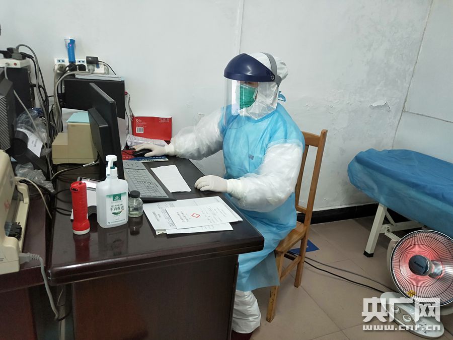 吳婷穿著防護(hù)服檢查病歷資料(央廣網(wǎng)發(fā) 通訊員供圖)