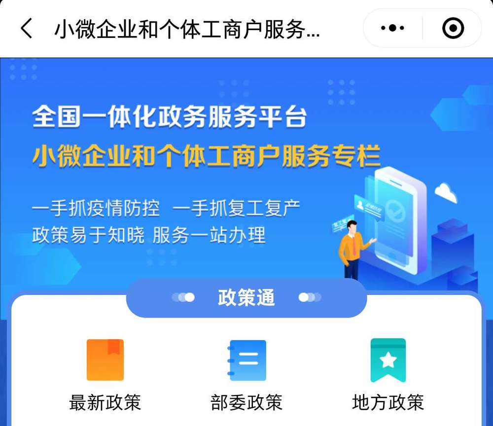 為推動解決疫情期間復工復產難題,國家政務服務平臺推出“小微企業和個體工商戶服務專欄”。