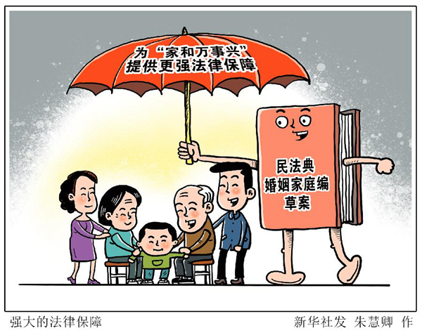 民法典婚姻家庭編草案針對當前婚姻家庭領域的新情況新問題,對現行婚姻法等規定作出修改和完善,回應了時代需求與民眾期盼,為塑造健康和睦的婚姻家庭關系提供了強大的法律保障。